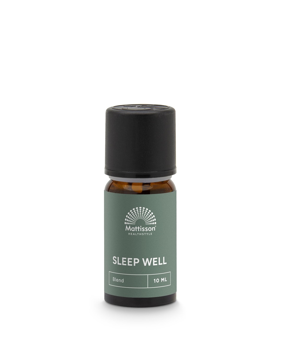 Mattisson Sleep well etherische olie is een heerlijke mix van lavendel, mandarijn, olibanum, roomse kamille en vetiver.