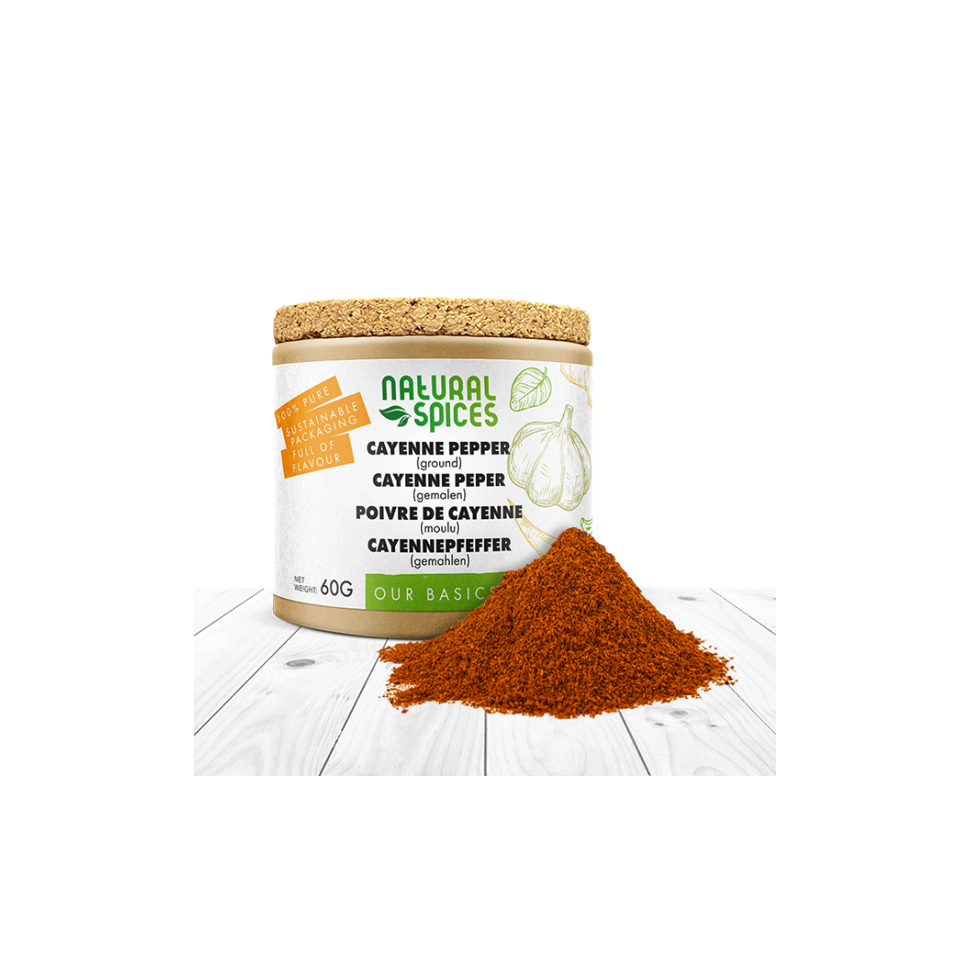 Cayennepeper gemalen komt van een plant die behoort tot het ras Capsicum annuum. Het is een van de vele soorten chilipepers en betreft een pure, gemalen Spaanse peper. Deze wordt ook wel rode peper genoemd. Cayennepeper dankt zijn naam aan de hoofdstad van Frans-Guyana. Hij is zeer pittig van smaak. Je gebruikt het om een flinke portie pit aan je maaltijd toe te voegen. De tot poeder gemalen pepers dienen zeer gedoseerd gebruikt te worden.